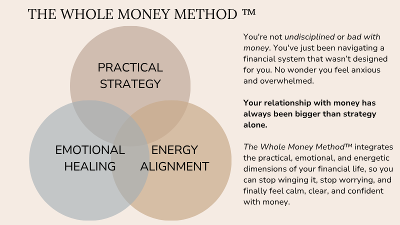 The Whole Money Method™ was designed for exactly that human — the smart, capable woman who is deeply ready for a peaceful financial life. One rooted in trust, clarity, and self-worth.